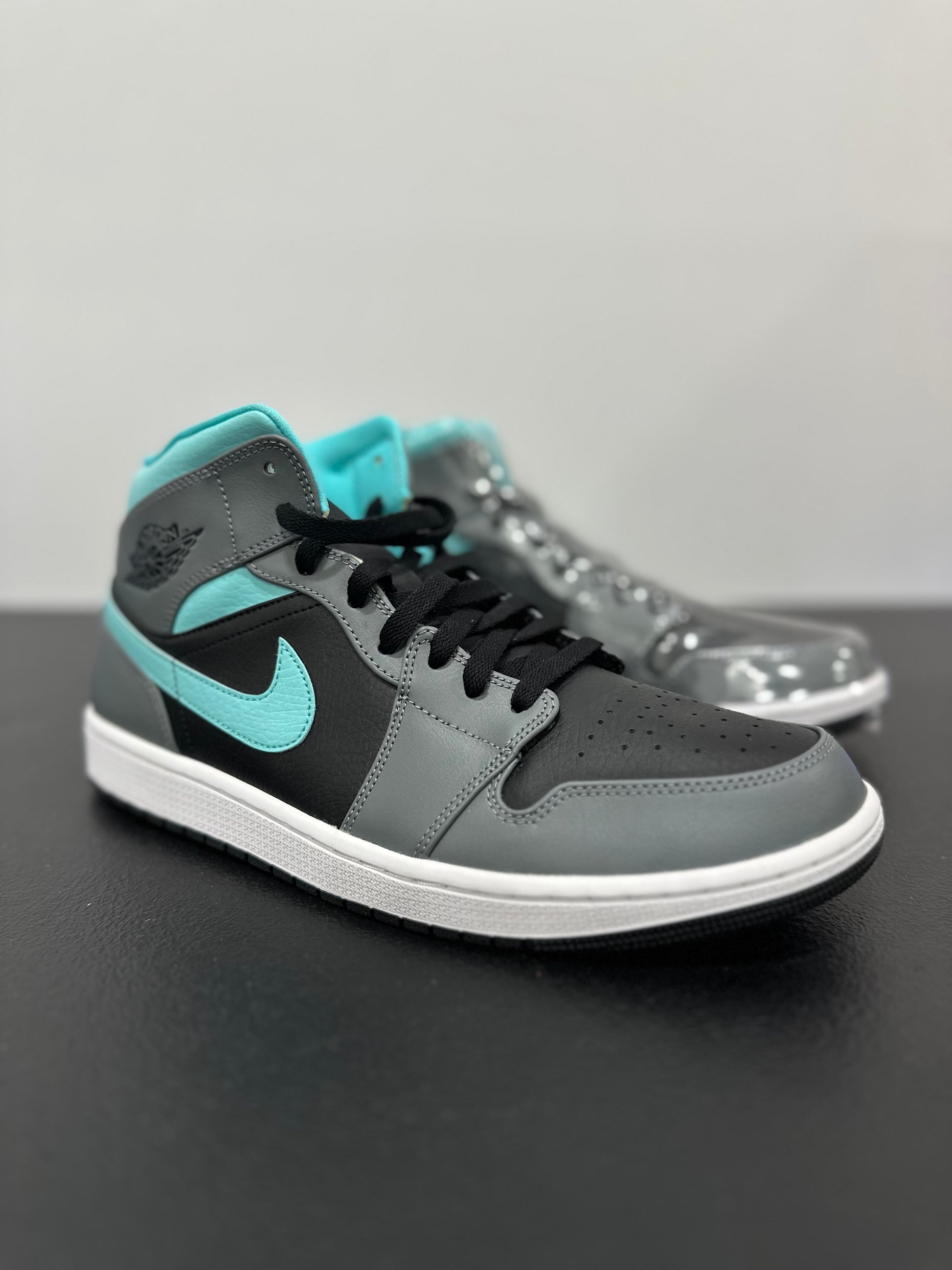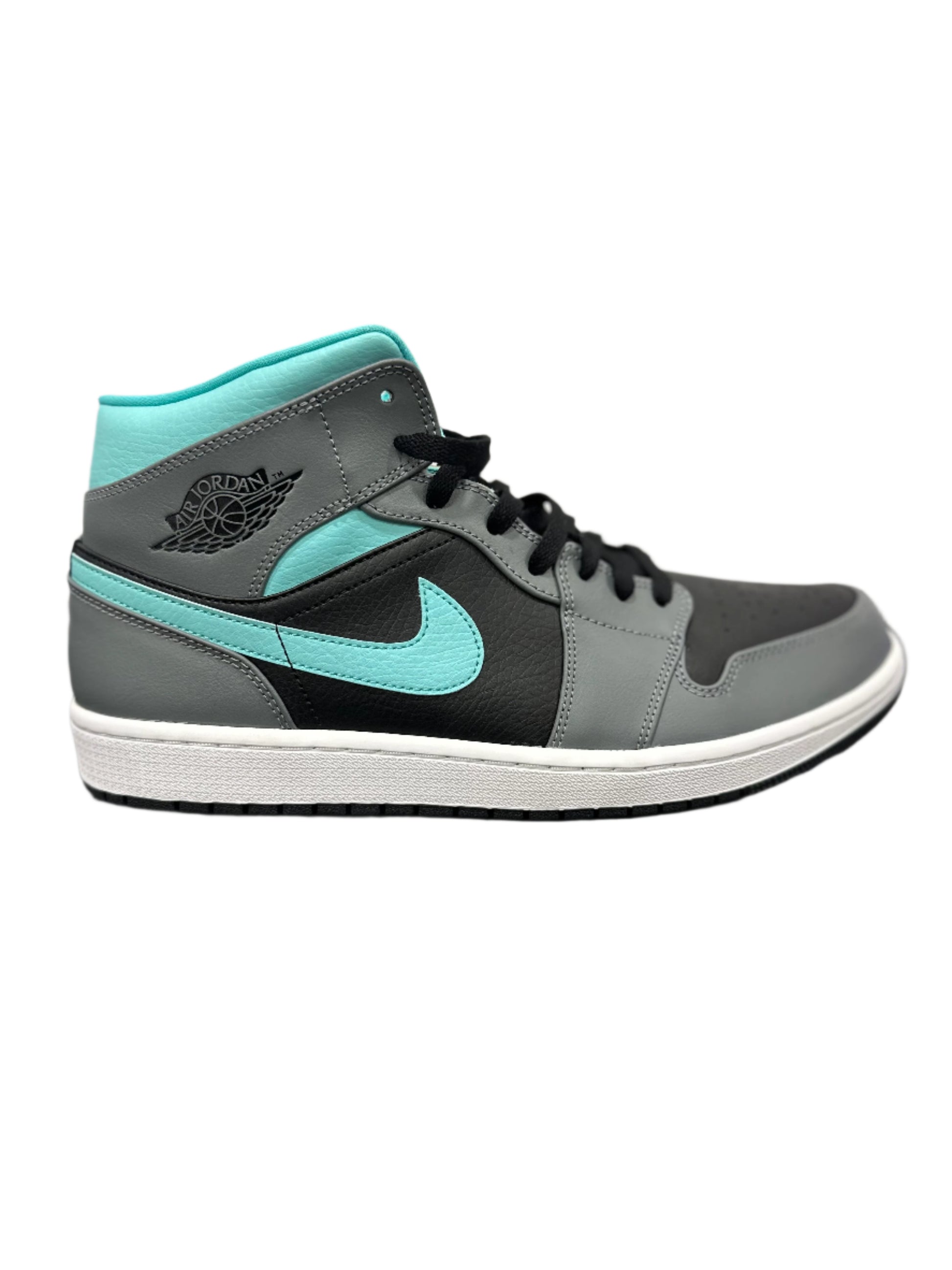 The Air Jordan 1 Mid Grey Aqua takes the classic mid-top Jordan 1 silhouette and adds a prominent aqua blue colorway on the sneaker. The sneaker is outfitted with black and grey, allowing the aqua blue to standout as the main focal point of the sneaker.