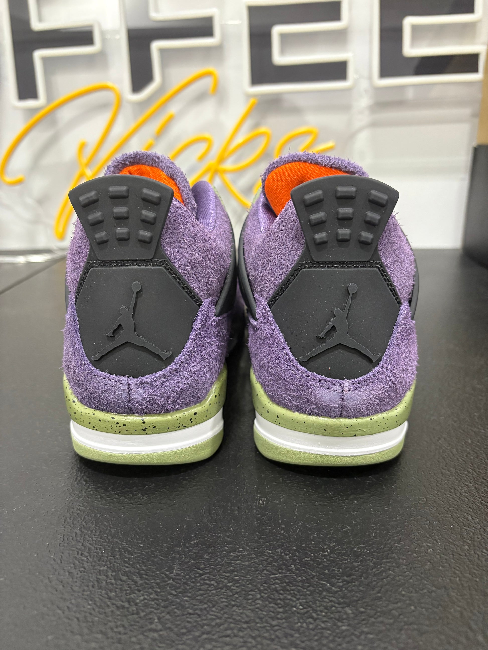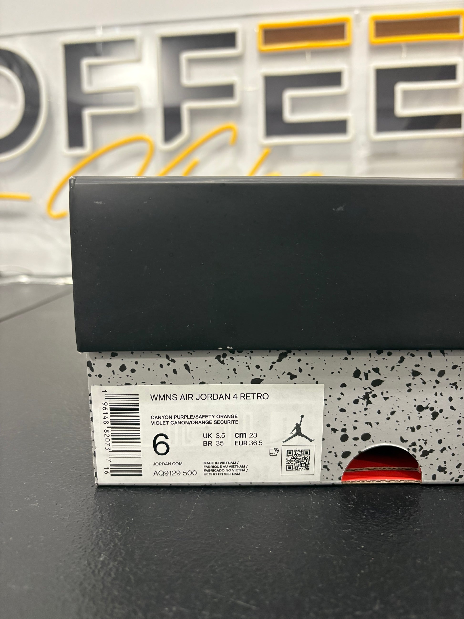 The Air Jordan 4 Retro Canyon Purple W was inspired by Tinker Hatfield’s 1989 design. This shoe replaces the traditional leather or nubuck build.