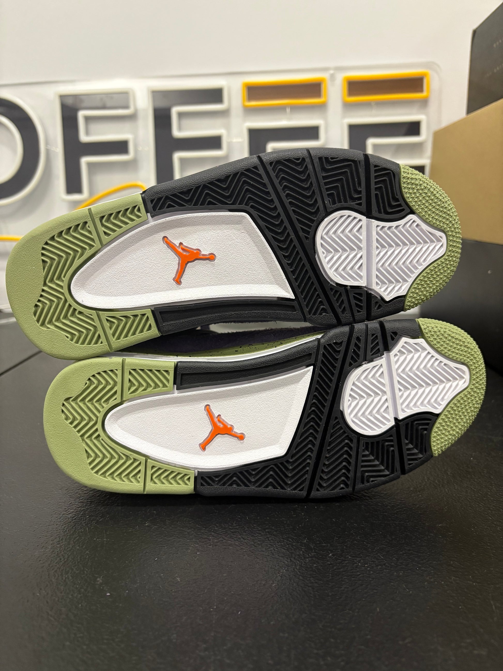 This Air Jordan 4 for women has an upper that is crafted from shaggy suede in a vibrant purple color finish. Lime green accents land on the speckled eyelets and midsole, while the signature Jumpman logo graces the woven tongue tag in Safety Orange. The bright hues are offset by contrasting hits of black on the molded wings, Jumpman-embossed heel tab, and herringbone-traction rubber outsole.