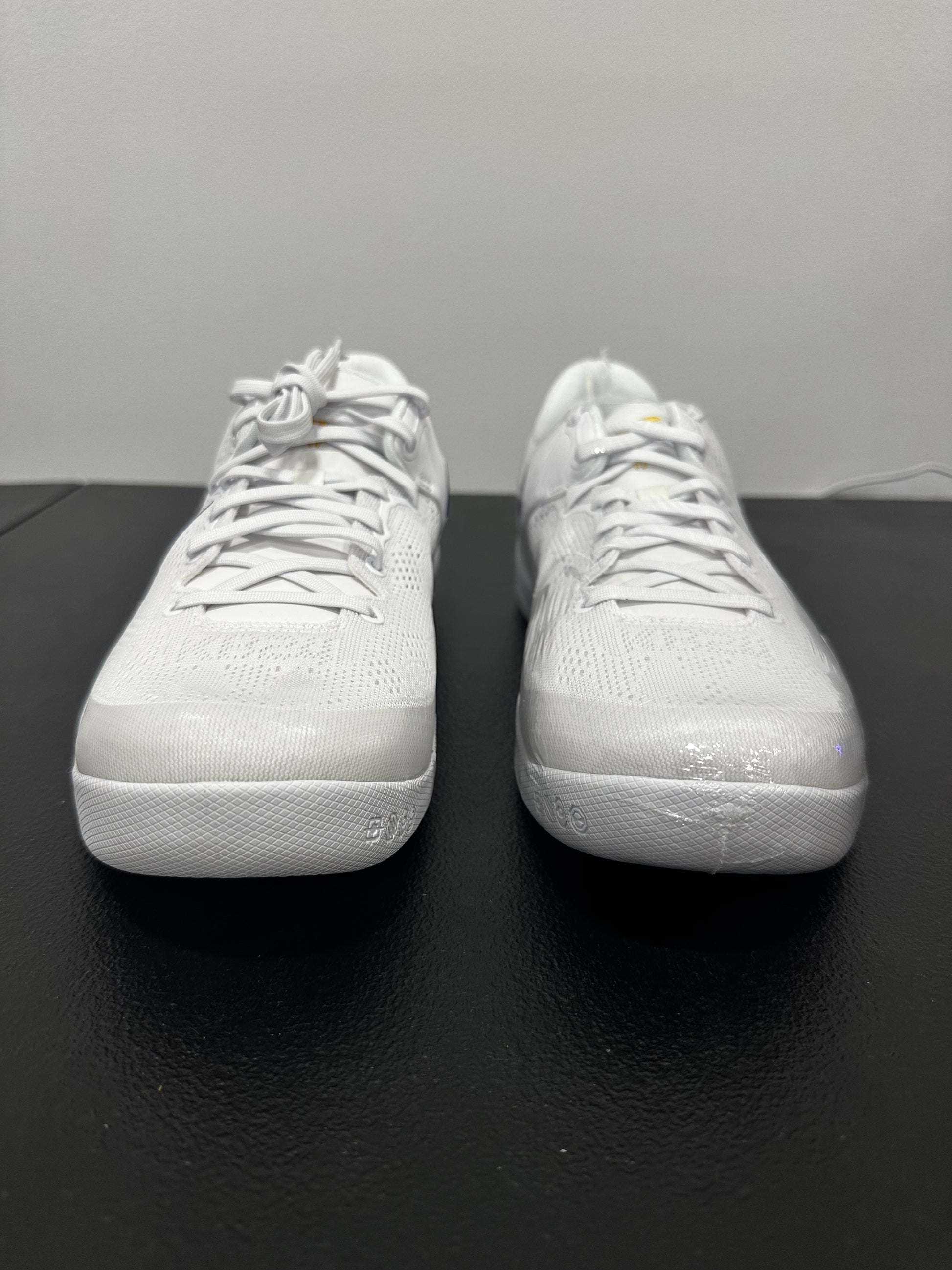 The Nike Kobe 8 Protro Lakers Home brings the energy of the Staples Center straight to your feet. This crisp white colorway is the perfect homage to the Lakers’ home uniforms, featuring a white engineered mesh upper, white midsole, and matching outsole. The purple embroidered Nike swoosh and Kobe’s signature in gold on the heel clip provide striking contrasts, while the gold Kobe logos on the tongue and heel tie the entire design together in true Lakers fashion.